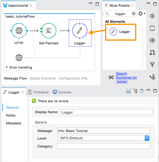 2016-05-01 10:26:31,842 [[basictutorial].HTTP_Listener_Configuration.worker.01] INFO org.mule.api.processor.LoggerMessageProcessor - Info: Basic Tutorial